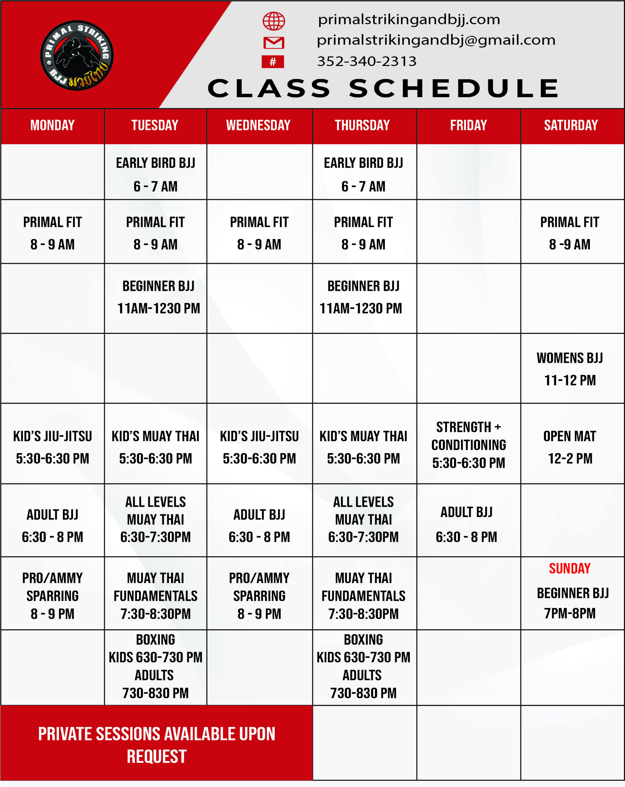 Kids classes are Monday through Thursday.
